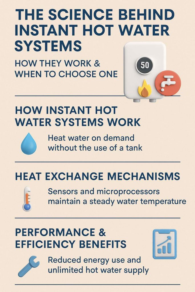 Instant hot water systems represent a precise blend of science and practicality, using advanced heat exchange technology to deliver efficient, continuous hot water when it’s needed most. Their ability to minimise energy waste, reduce running costs, and provide an endless supply of hot water makes them a valuable upgrade for both modern homes and commercial properties.